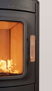 Ein gemütlicher, moderner Ofen mit weichen Rundungen. Die Front und seine Feuertüre aus Guss sind gebogen. Stilvoll der Griff und Luftzufuhrregler aus Holz. Der optionale Sockel mit offenem Holzfach hebt ihn auf die richtige Feuerhöhe. Wer mag kann sich aber auch selbst eine Erhöhung als Podest gestalten. Er ist in der Variante Stahl oder mit seitlicher Keramikverkleidung erhältlich.