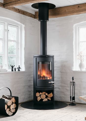 Den 7843 gibt es in drei verschiedenen Varianten. Man kann ihn mit einem Holzfach, mit einem glatten Sockel oder mit einer Schublade unter der Brennkammer bekommen. Der Sockel hat eine Höhe von 40,0 cm und bietet eine kleine Staufläche für z. B. Brennholz. Die Gesamthöhe des Ofens liegt bei 115,7 cm.